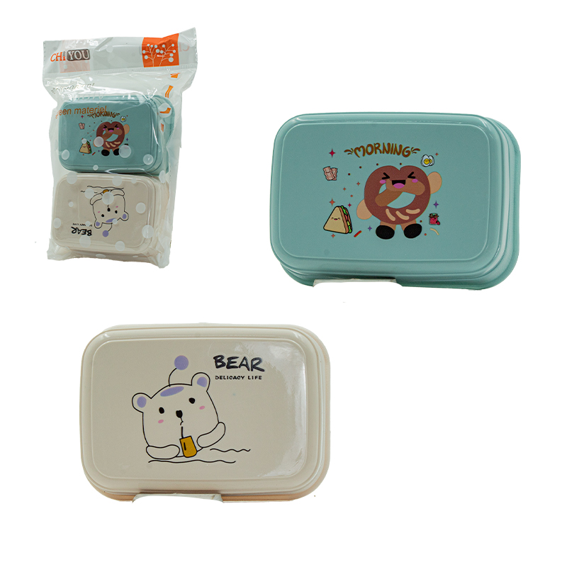 SABONETEIRA PLAST 13X9X5CM C/2PCS ESTAMP URSO 2 CORES SORT BCO/RS OPP