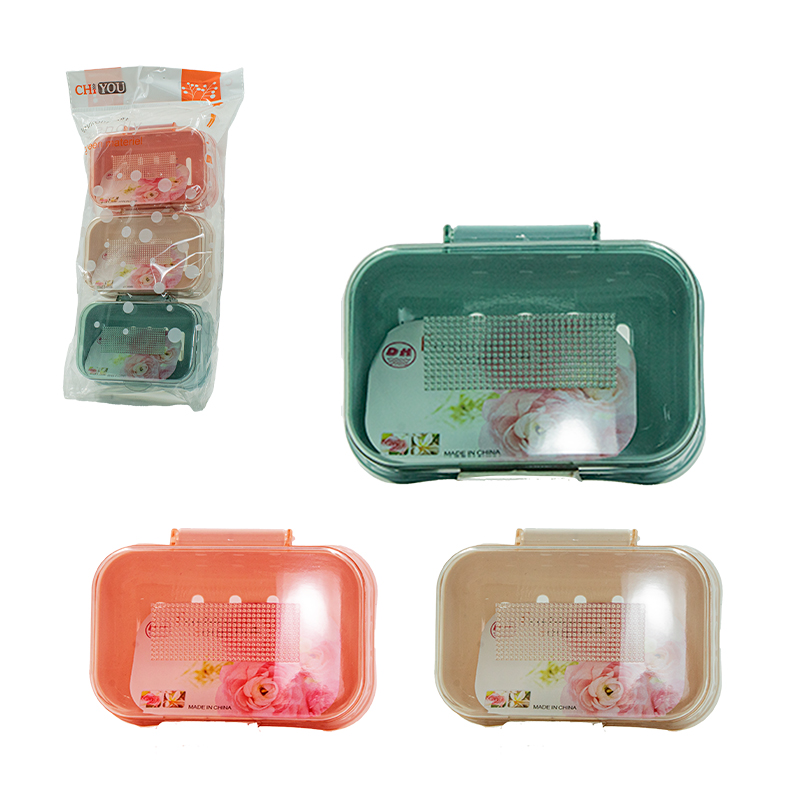 SABONETEIRA PLAST 12,5X9,5X5CM C/3PCS LISA CORES SORT POLYBAG