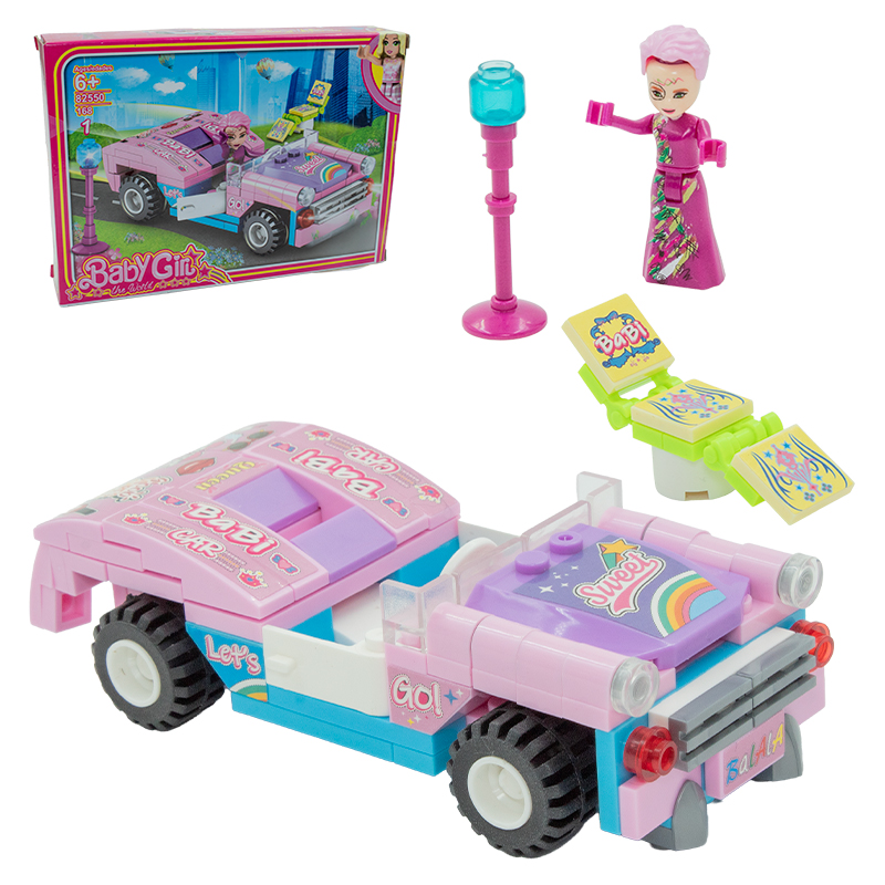 KIT BLOCOS PLAST 17X24X4,5CM CARRO ROSA C/165PCS COLOR BOX