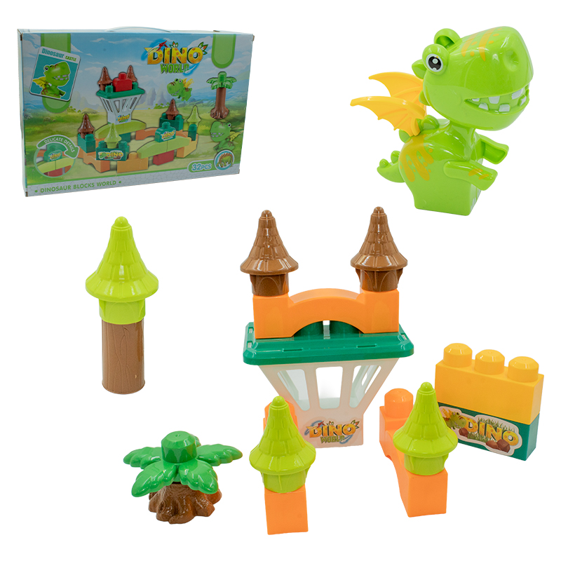KIT BLOCOS PLAST 27,5X41X10CM DINO WORLD C/32PCS COLOR BOX A