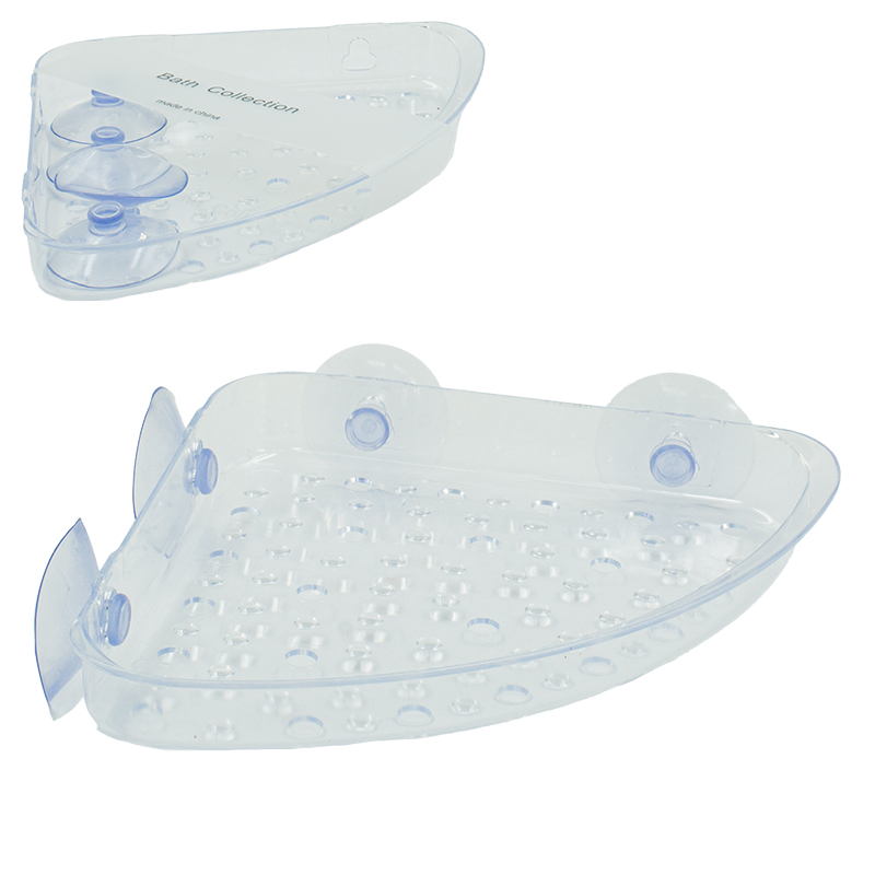 PORTA SHAMPOO PLAST 25,5X18,5X3CM P/BANHEIRO P/CANTO C/4 VENTOSAS EMB PVC + OPP