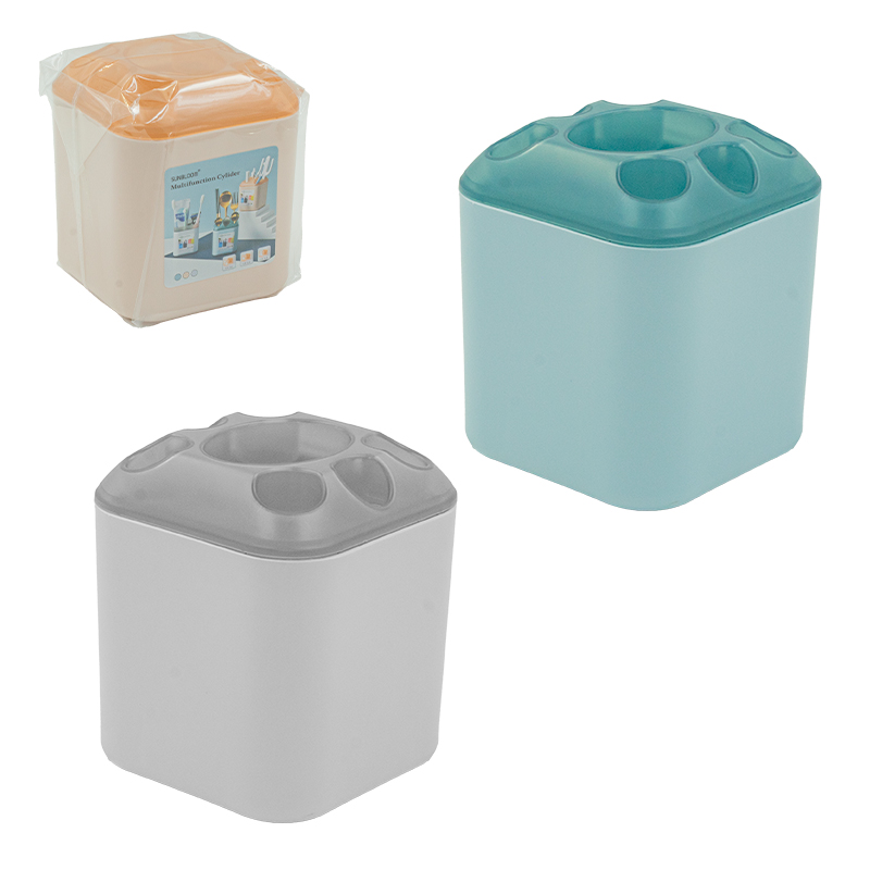 PORTA ESCOVA PLAST 10,5X9CM QUAD 3 CORES SORT (AZ/RS/CZ) OPP