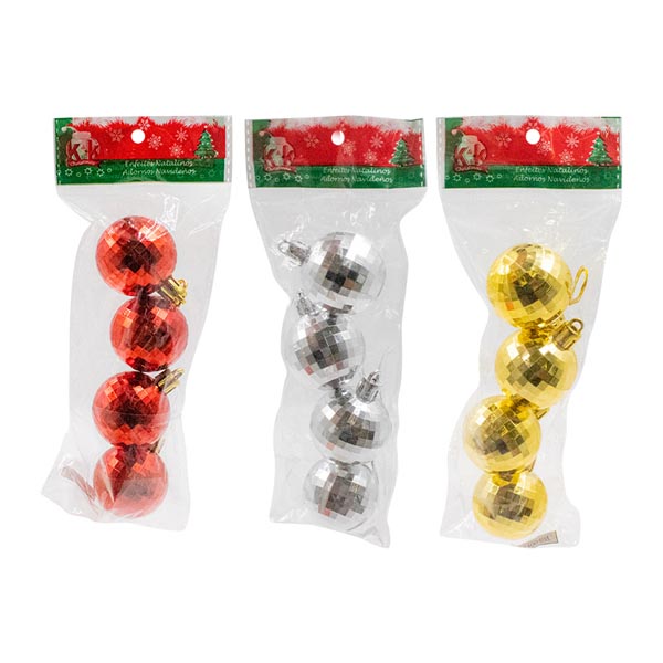 BOLA PLAST 4CM C/4PCS FACETADA 3 CORES SORT (50%VERM/ 30% DOU/ 20% PTA) OPP HEADER