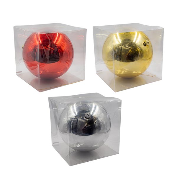 BOLA PLAST 25CM C/1PC METALIZADA 3 CORES SORT (50%VERM/ 30% DOU/ 20% PTA) PVC BOX