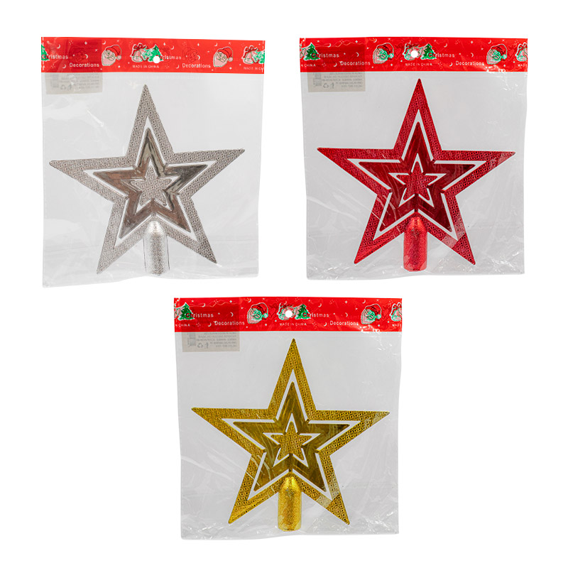 PONTA P/ARVORE 15CM ESTRELA VAZADA 3 CORES (50% VERM/30% DOU