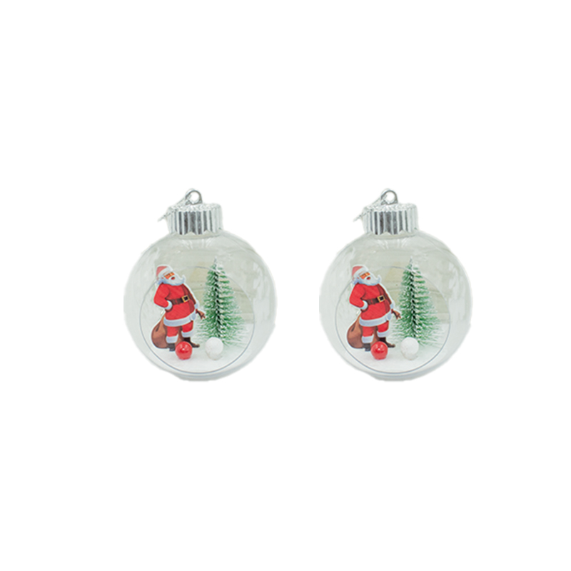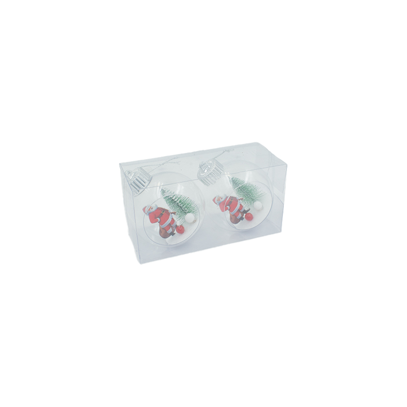 ENF NATALINO 8CM C/2PCS C/BOLA TRANSP C/PAPAI NOEL E LUZ DE LED PIL REL PVC BOX