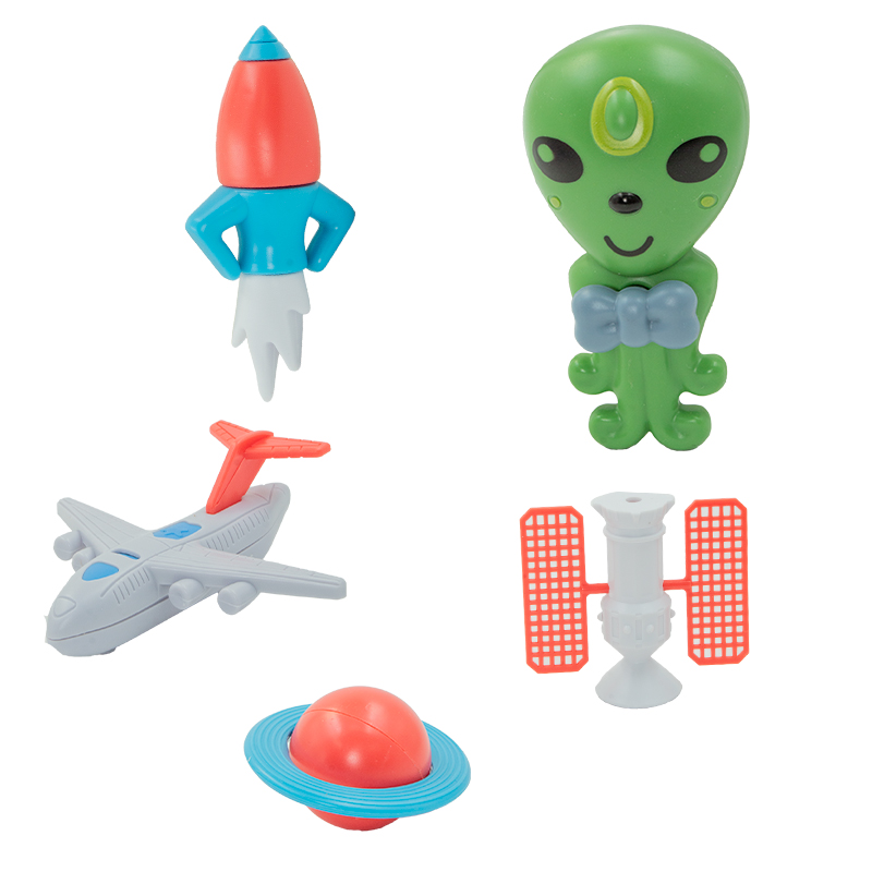 KIT ESPACIAL PLAST 28X19CM C/5PCS ALIEN/FOGUETE/PLANETA/SATE