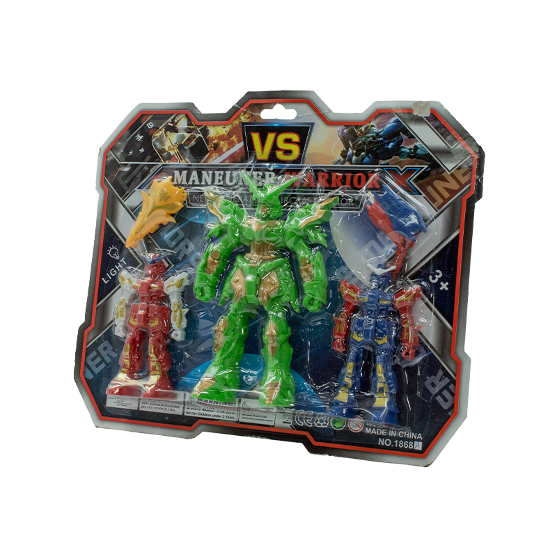 ROBO PLAST 19X11CM C/5PCS SORT (3 ROBOS + 2 ARMAS) TRANSFORMERS CORES SORT CARTELA