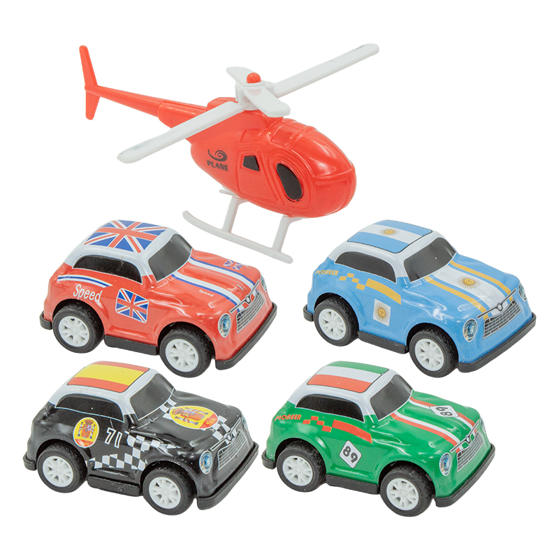 KIT CARRINHOS PLAST C/4 CARROS C/2 HELICOPTEROS C/SINALIZADO