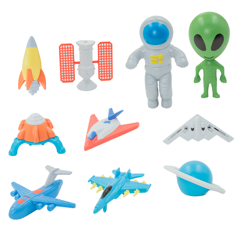 KIT ASTRONAUTA PLAST 10X5CM C/10 PCS NAVES/ASTRONAUTAS/ALIEN