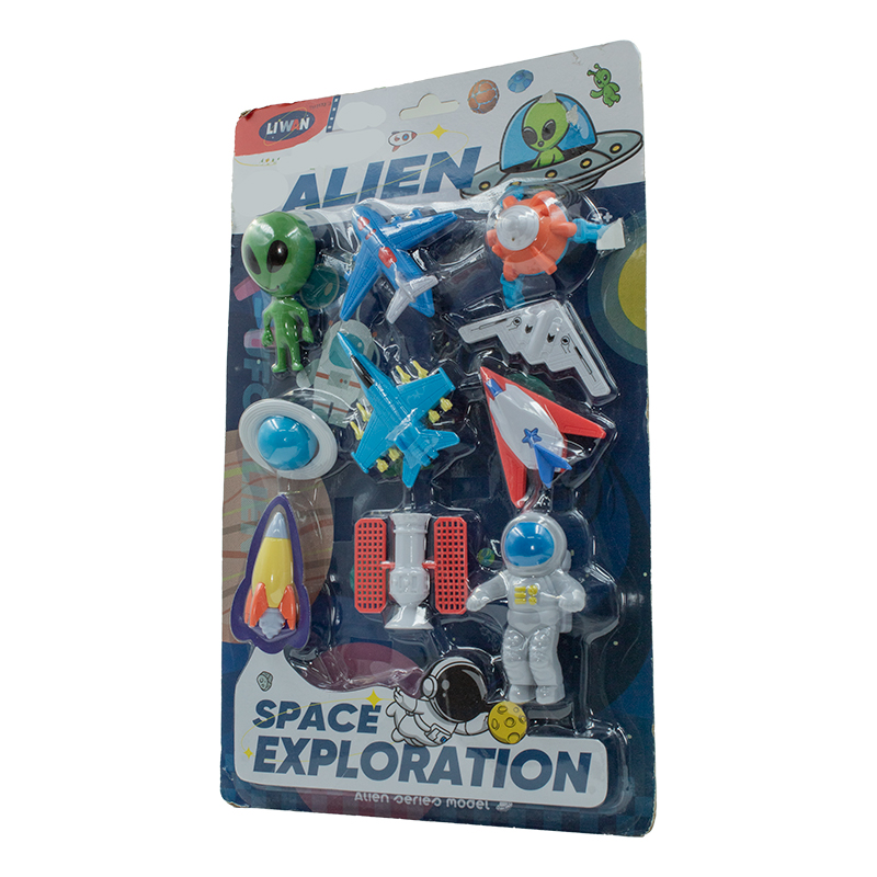 KIT ASTRONAUTA PLAST 10X5CM C/10 PCS NAVES/ASTRONAUTAS/ALIENS CARTELA