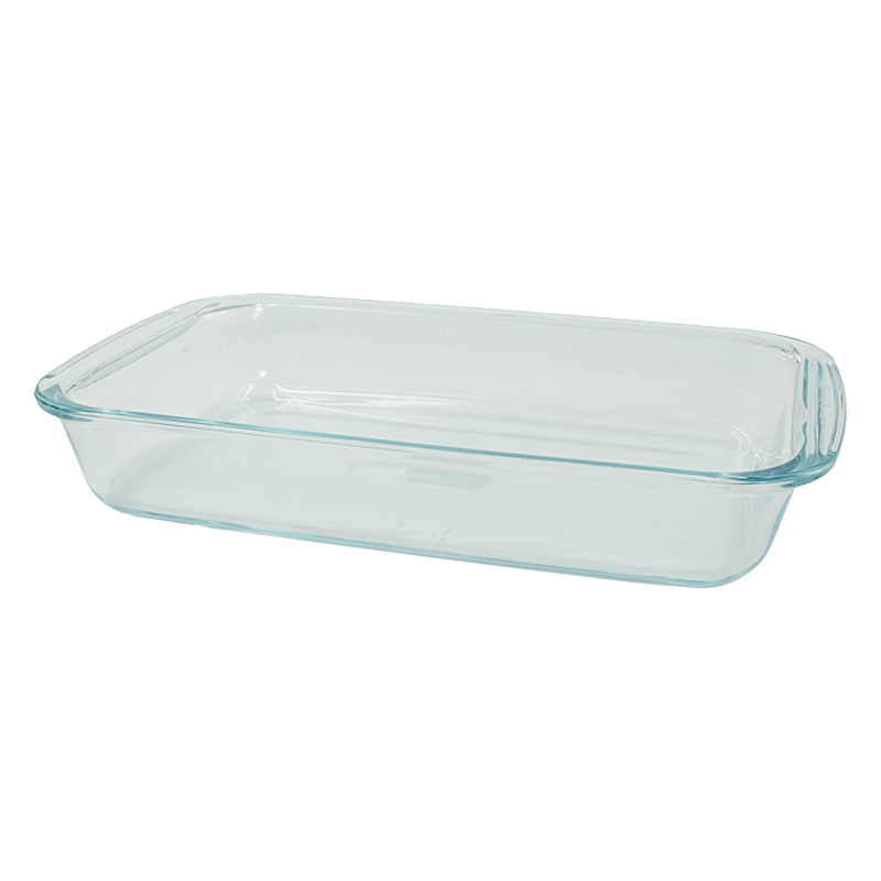TRAVESSA BOROSILICATO 26X15X4,5CM CAP 1L RETANG TRANSP C/ALCA LATERAL CARTAO