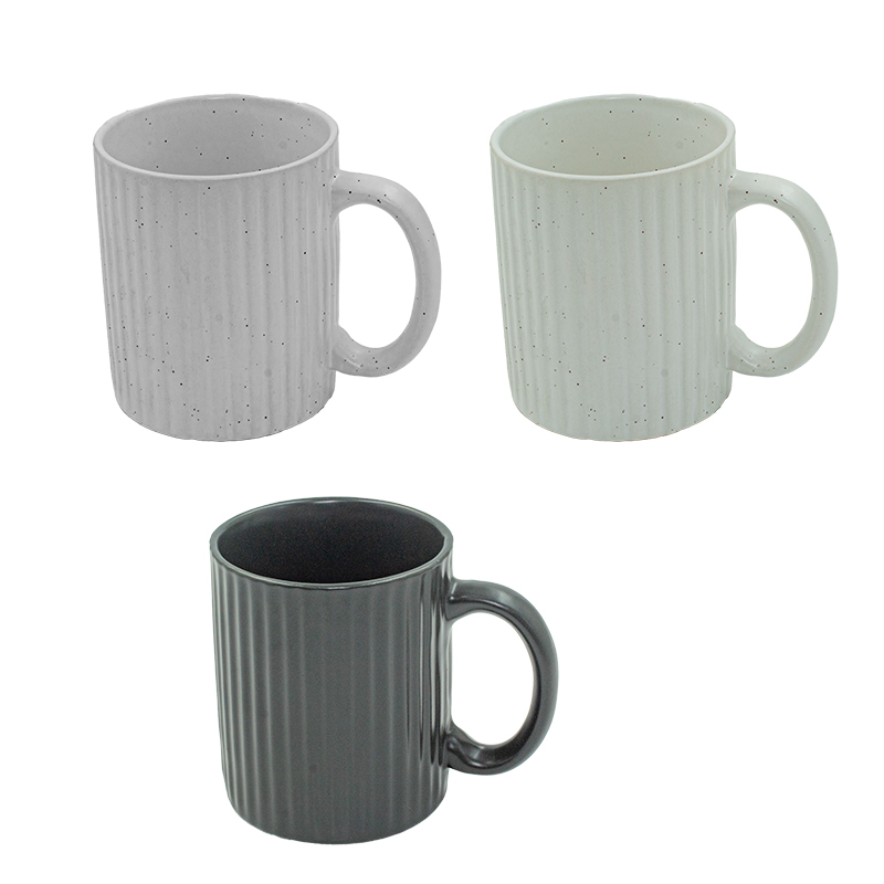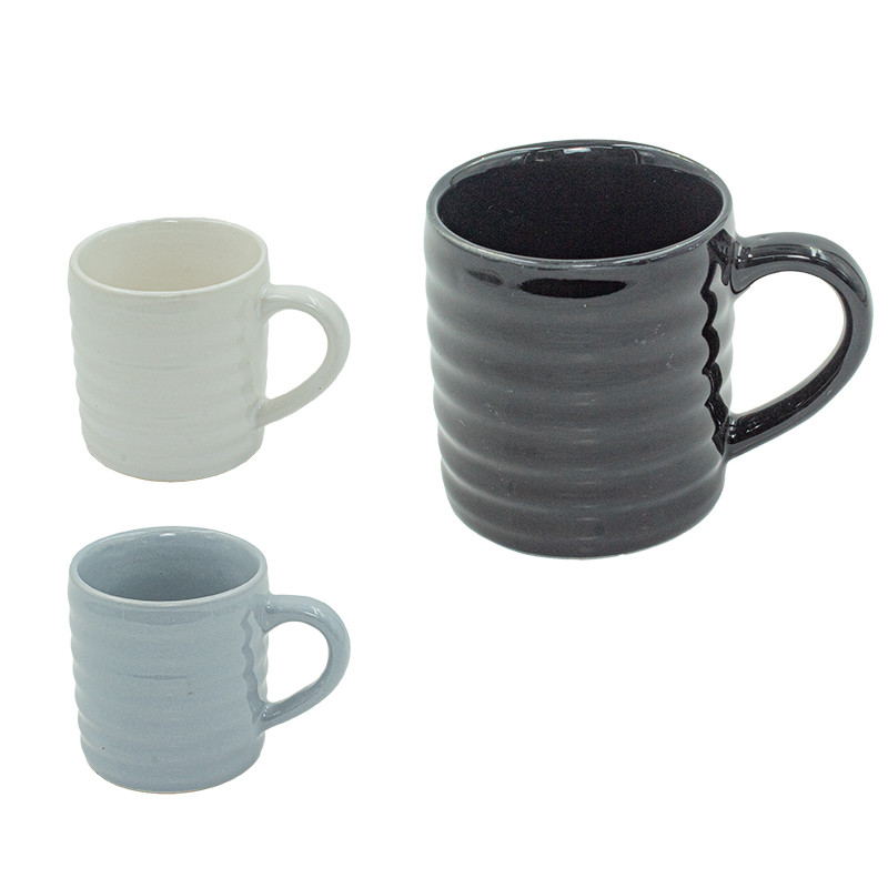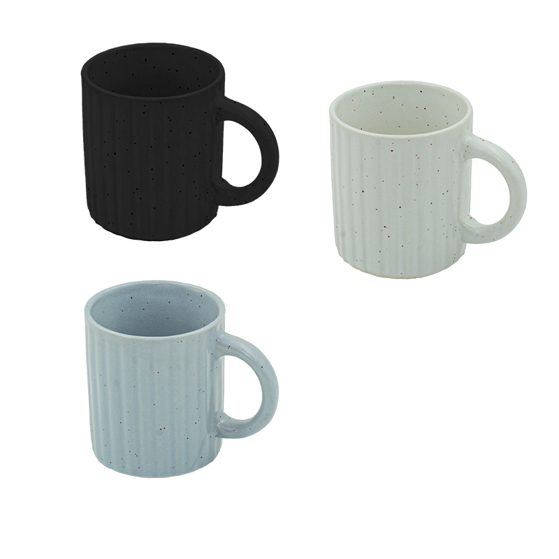 CANECA DE CERAMICA 330ML CILINDRICA CANELADA FOSCA 3 CORES S