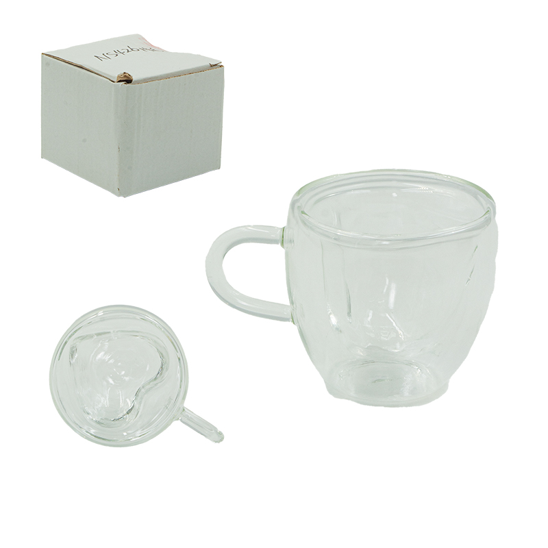 CANECA DE VIDRO 13,5X10X9,5CM 240ML F/CORACAO PAREDE DUPLA