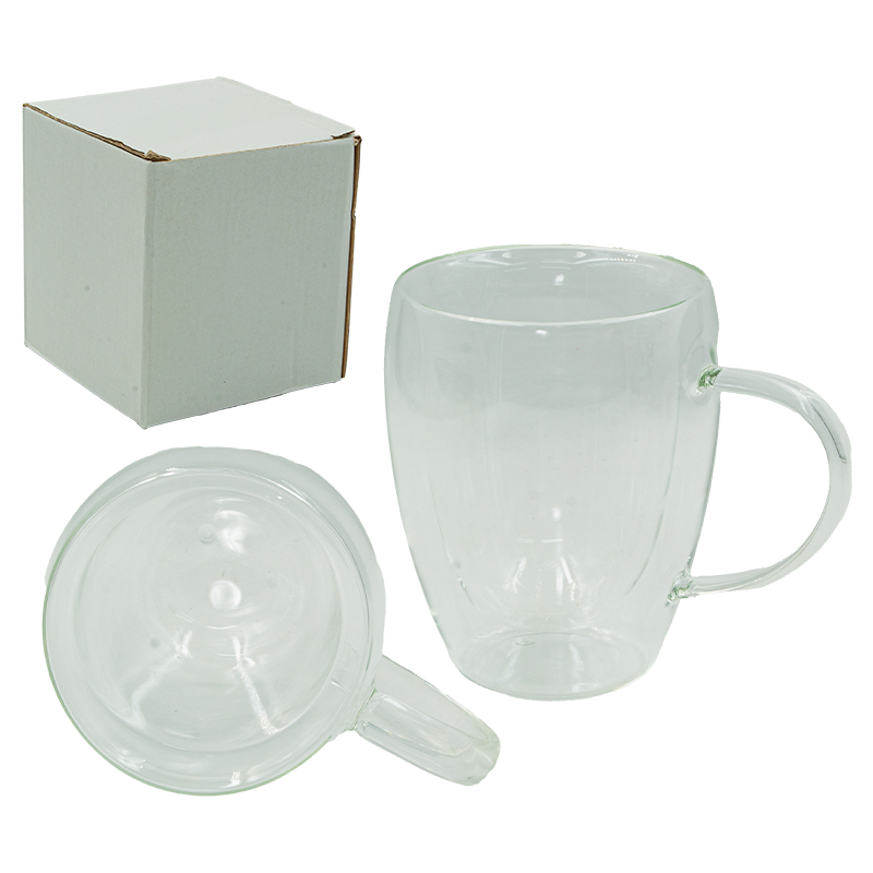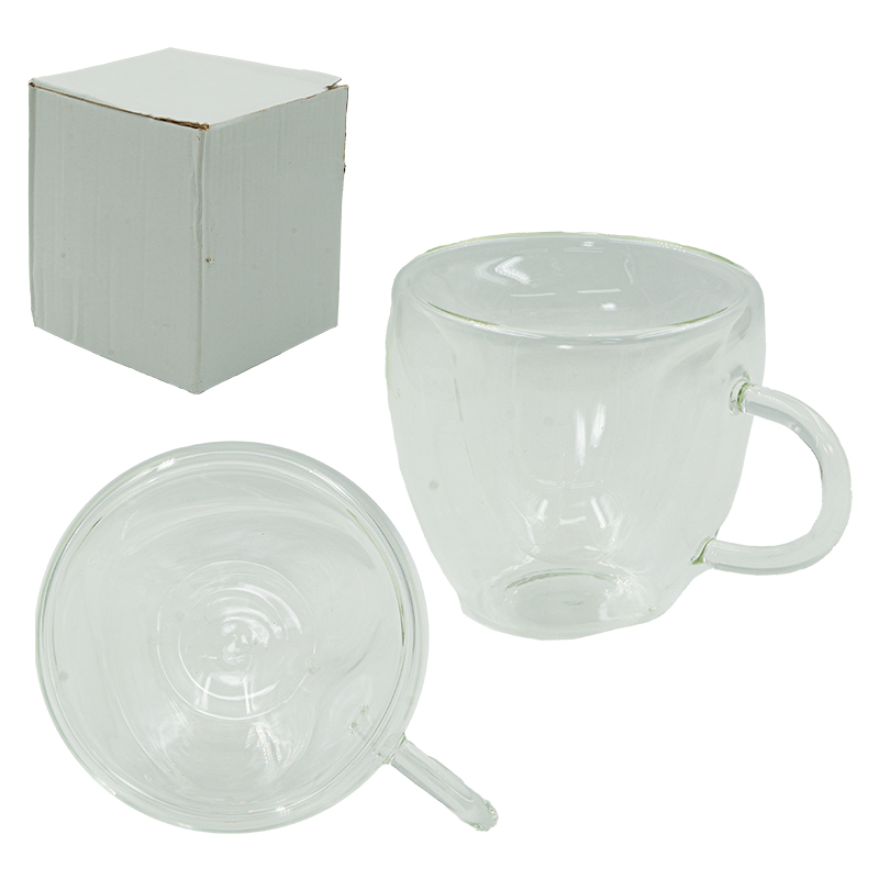 CANECA DE VIDRO 13X11,5X9CM 350ML PAREDE DUPLA TRANSP