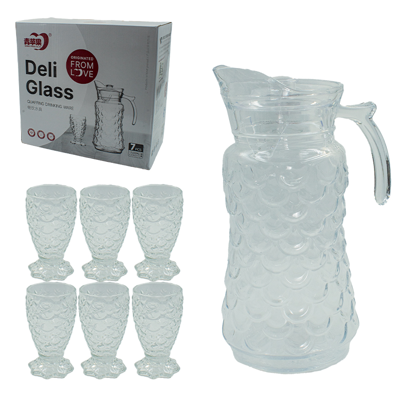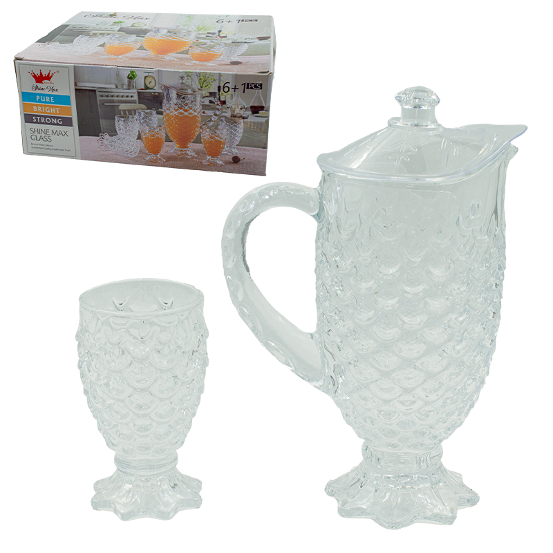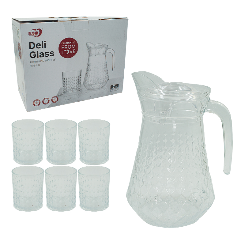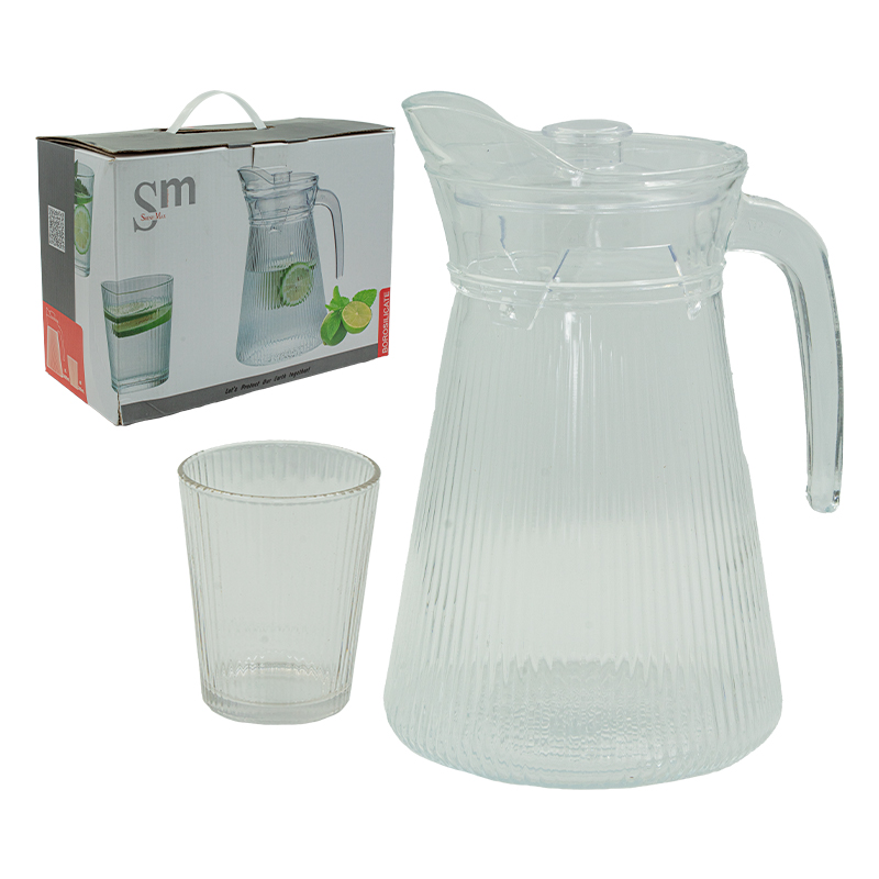 JARRA DE VIDRO 20X13CM 1,6L C/6COPOS 9,5X7,5CM 260ML CANELAD