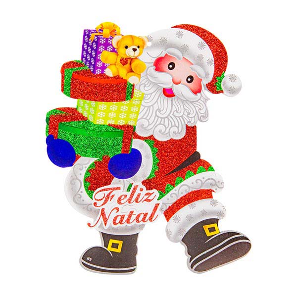 CARTAZ DE PAREDE 23X37CM PAPAI NOEL C/GLIITER HEAD CARD
