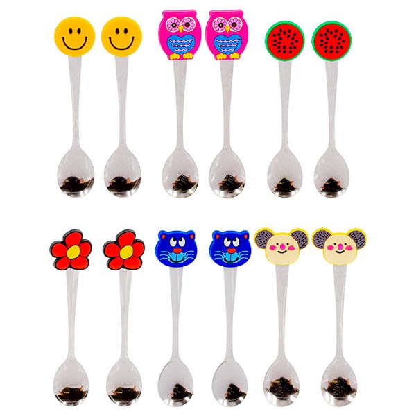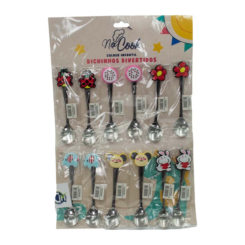 COLHER DE METAL 15CM MOD SORT C/FRUTAS/SMILE/FLORES/ANIMAIS CARTX12 OPP