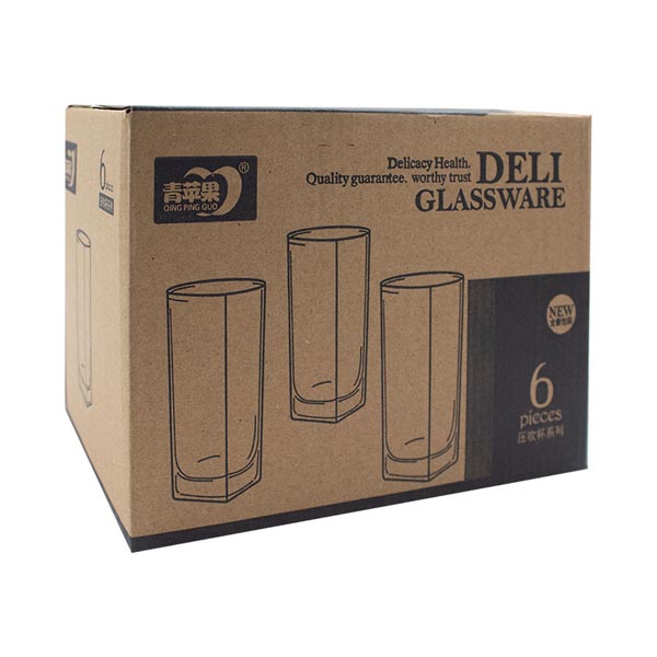 COPO DE VIDRO 14X7CM 240ML C/6PCS BASE QUAD TRANSP C/BASE GROSSA BROWN BOX