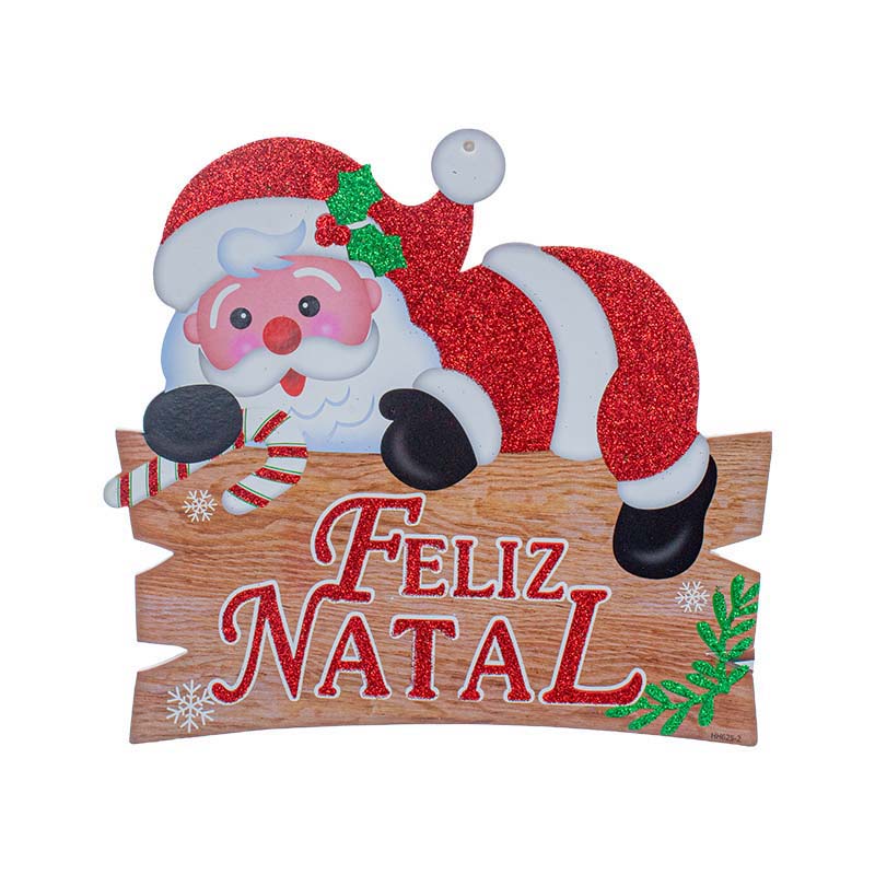 PLACA NATALINA 20X23CM FELIZ NATAL 2 MOD SORT PAPAI NOEL/BNEVE DEITADOS OPP