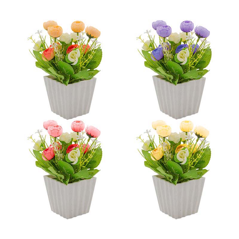 VASO 20X8CM PLAST C/PLANTA ART 4 MOD SORT (RS/RX/LA/BCO) COLOR BOX