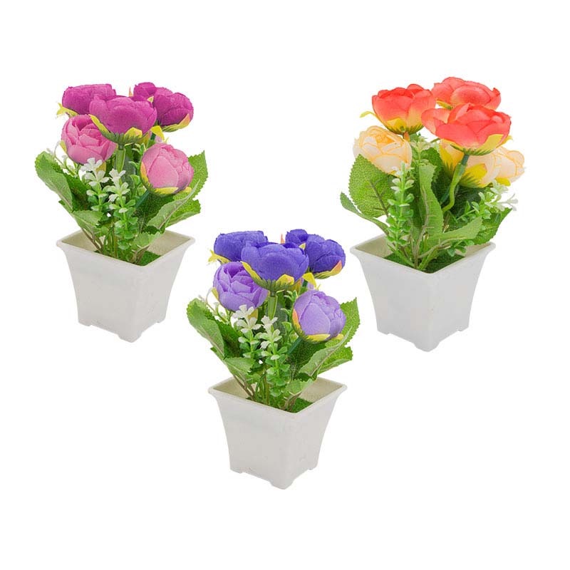 VASO 18X8CM PLAST C/PLANTA ART 3 MOD (LIL/RS/RX) SORT COLOR BOX