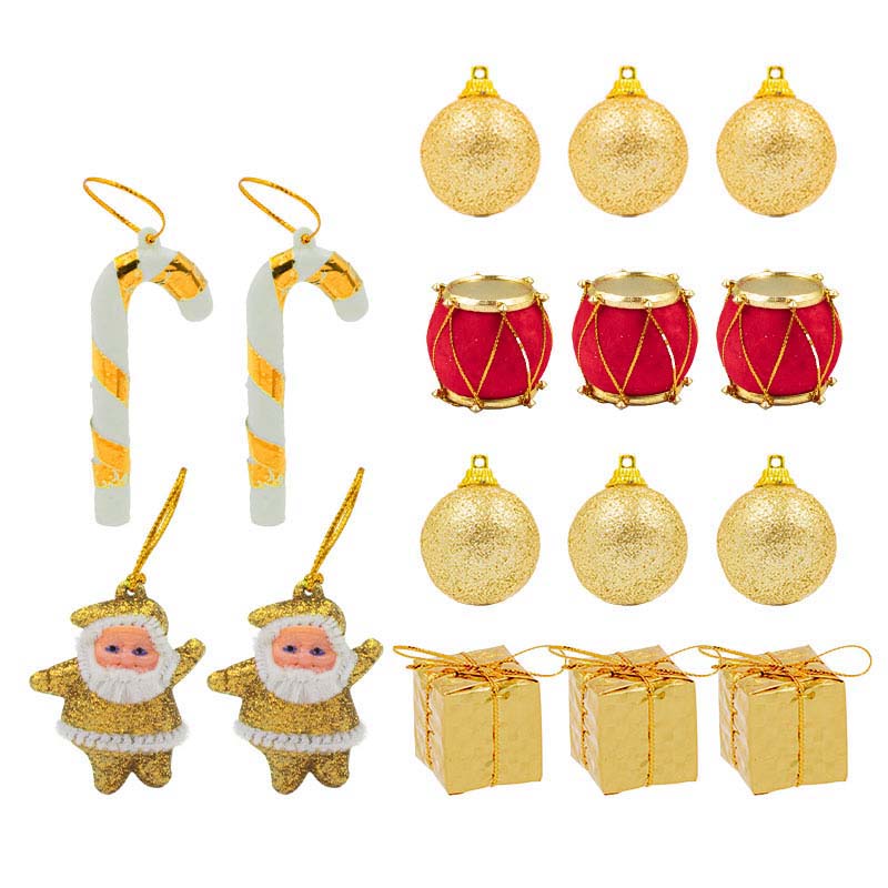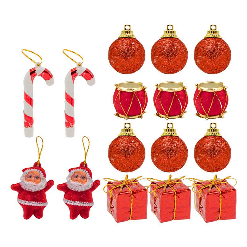 KIT ENFEITES PLAST 4CM C/17PCS CARAM/PAPAI NOEL/BOLAS/TAMB/ARV OPP