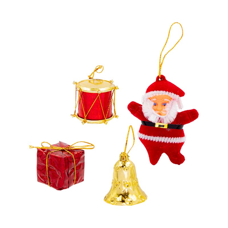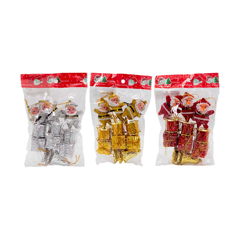 KIT ENFEITES PLAST 3CM C/12PCS PAPAI NOEL/PCT PRES/TAMBO/SINOS OPP