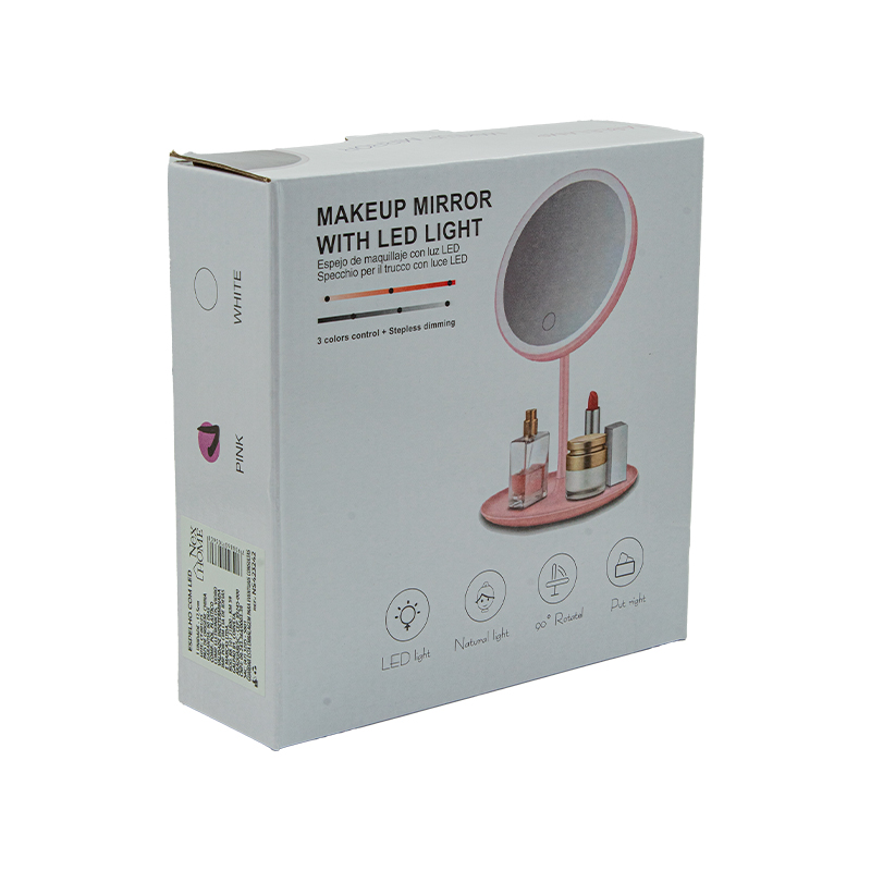 ESPELHO 18,5X29,5CM RED C/BASE E SUPORTE PLAST C/LUZ LED 2 CORES SORT BCO/RSA COLOR BOX