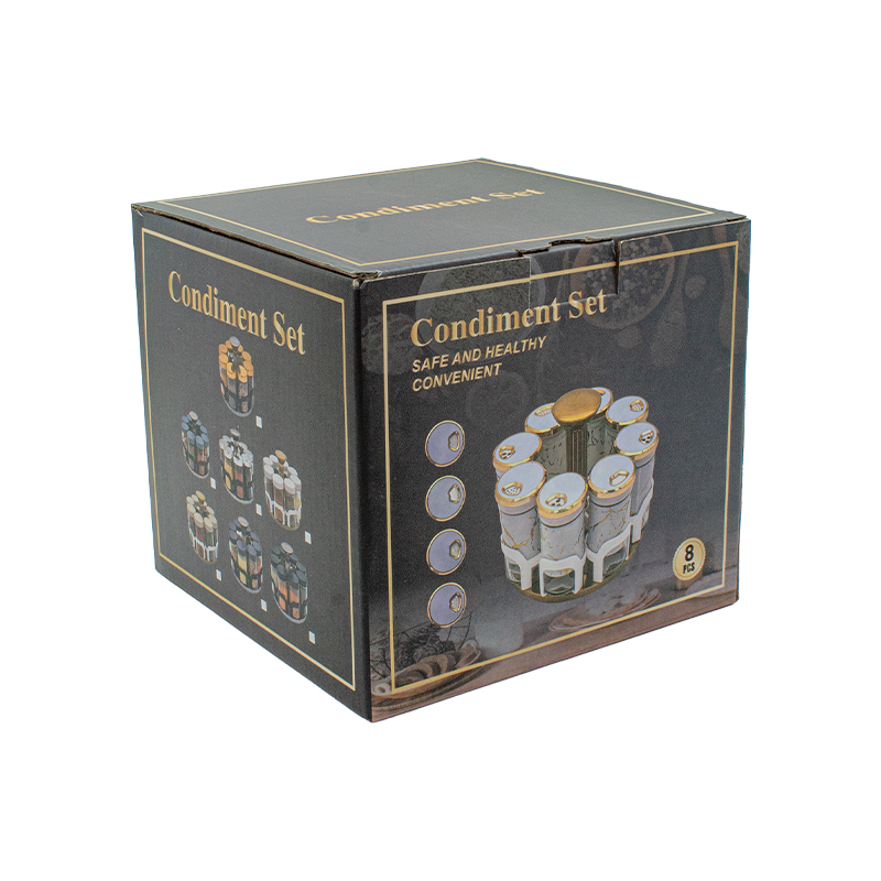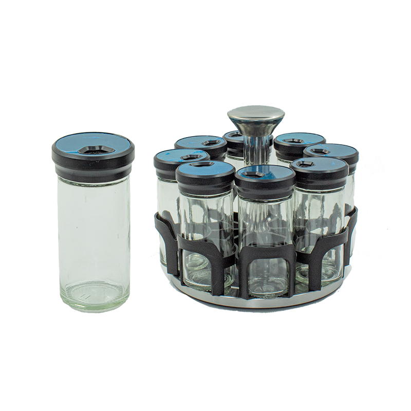 PORTA CONDIMENTOS DE VIDRO 9X4CM C/8 T/MET INOX INT PLAST RED GIRATORIO COLOR BOX