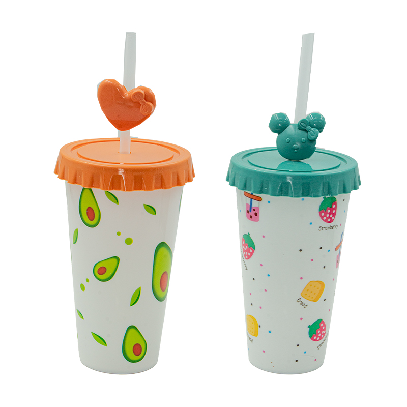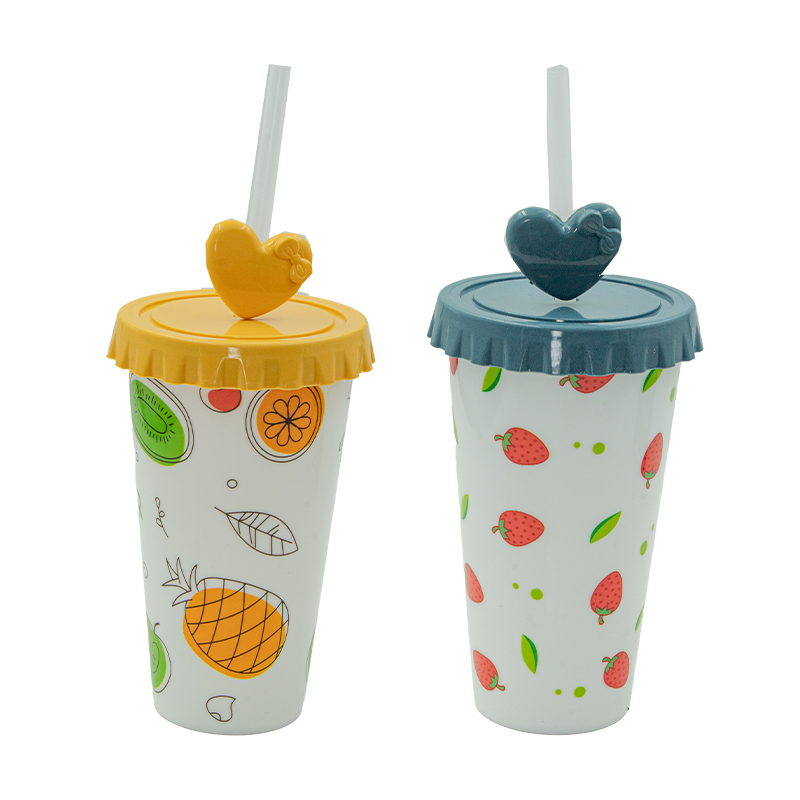 COPO PLAST 15,2X9CM ESTAMP FRUTAS C/CANUDO BULK PKG