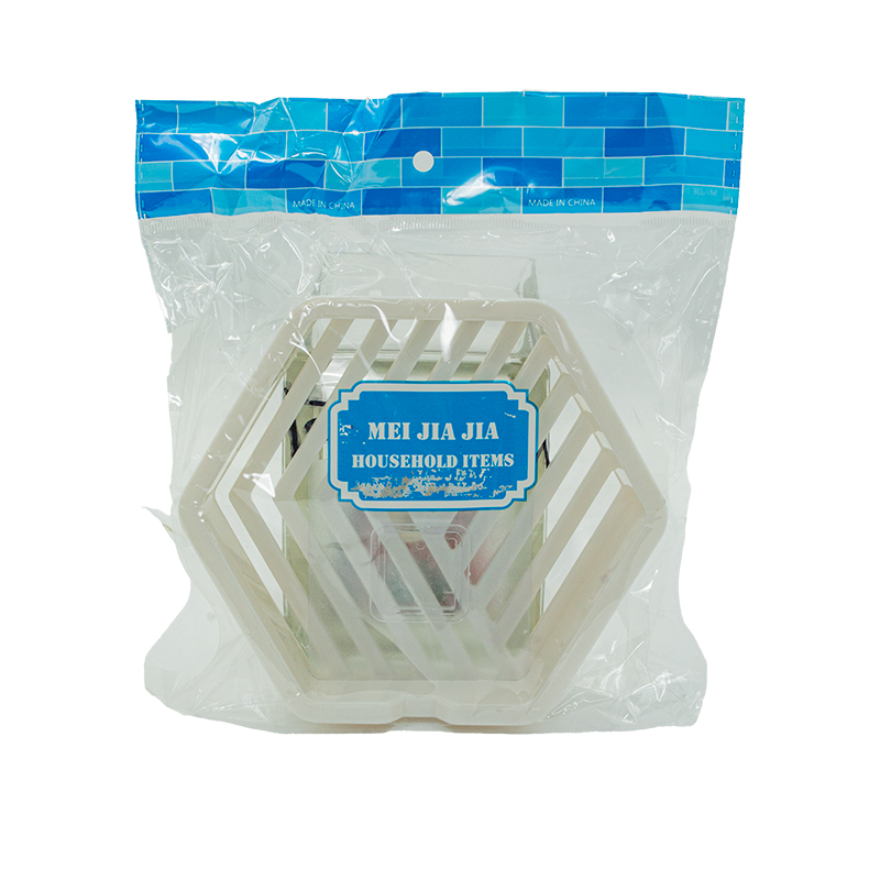 SABONETEIRA PLAST 14X3,5X5,7CM HEXAGONAL C/ADESIVO BCO POLYBAG OPP