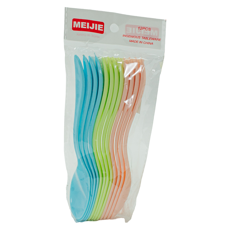 COLHER PLAST 17CM C/12PCS 3 CORES SORT POLYBAG OPP