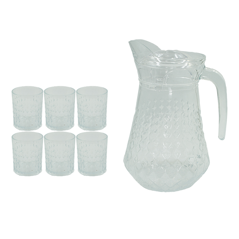 JARRA DE VIDRO 20X13CM 1,6L C/6COPOS 9,5X7,5CM 260ML CANELAD