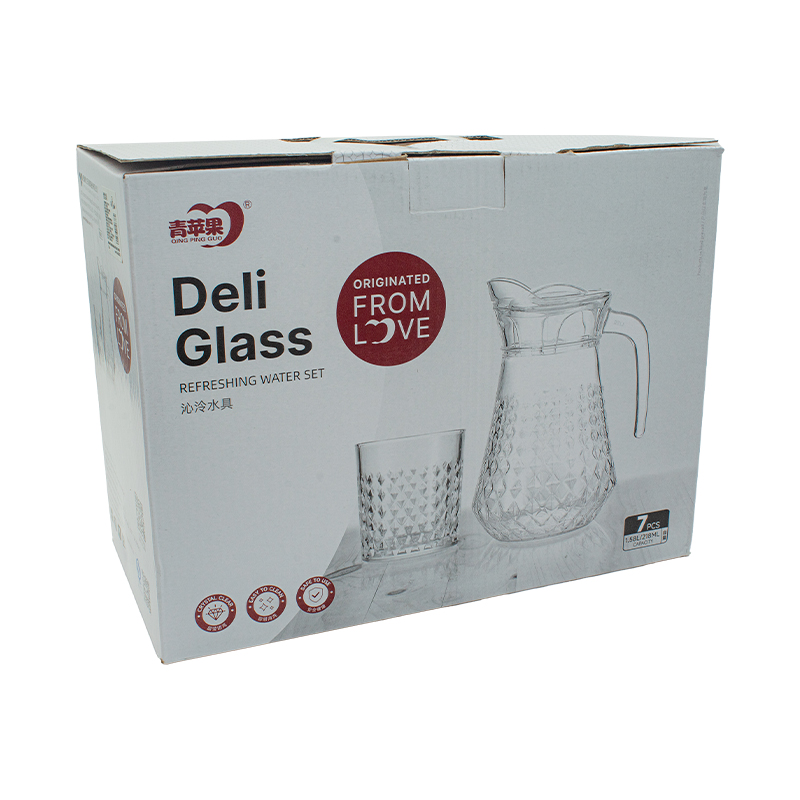 JARRA DE VIDRO 22X11CM 1,58L C/6COPOS 7,2X7CM 200ML DIAM TRANSP COLOR BOX