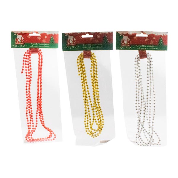 CORRENTE PLAST BOLINHA 1,9M X 5MM METALIZADA 3 CORES SORT (50%VERM/ 30% DOU/ 20% PTA) HEADERCARD